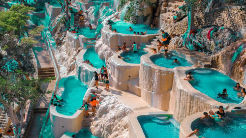 Durante el camino, se aprecian impresionantes vistas montañosas y al llegar, podrás relajarte en las pozas de agua termal, con temperaturas entre 34 y 38 °C, alimentadas por un río de color